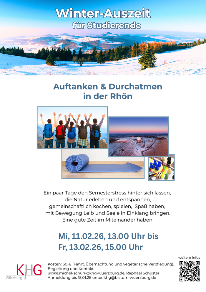 ANMELDUNG bis 15.01.26 unter khg@bistum-wuerzburg.de mit Anmeldeformular (in der KHG erhältlich).