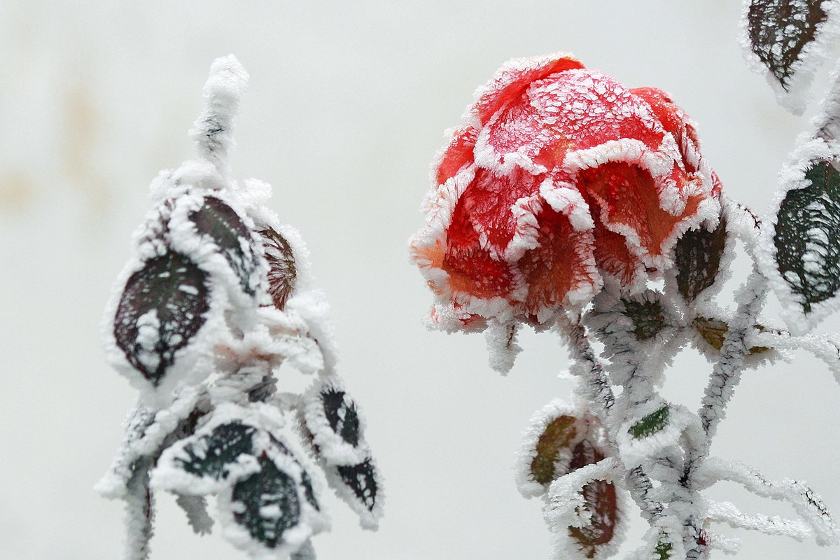 In meiner Straße blühen zwei Rosenköpfe. Mitten im Winter. Sie strecken sich heraus, durch die Gitter des Zaunes hindurch, und begrüßen jeden, der an ihnen vorbeiläuft.